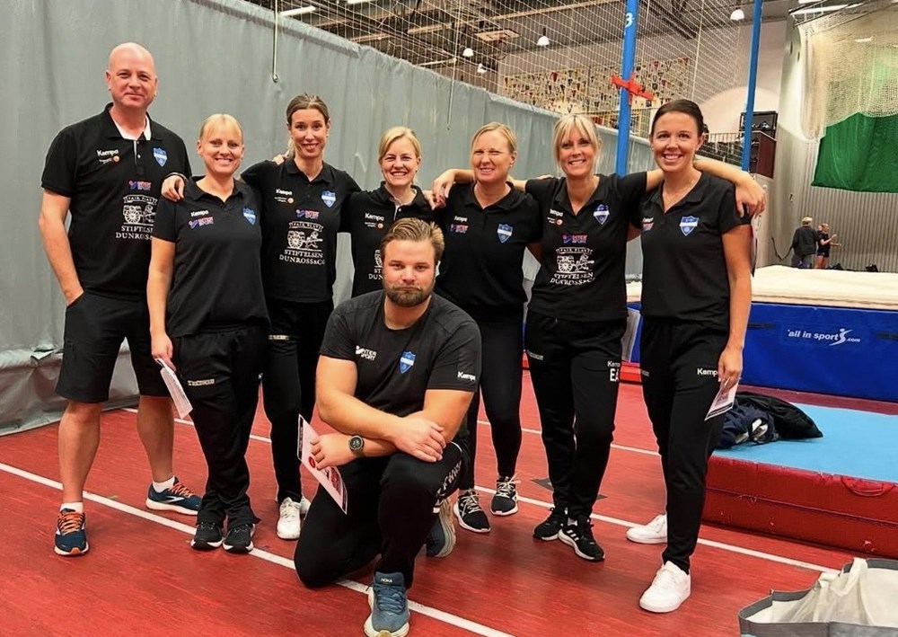 Elin (näst längst till höger) tillsammans med sina tränarkollegor.