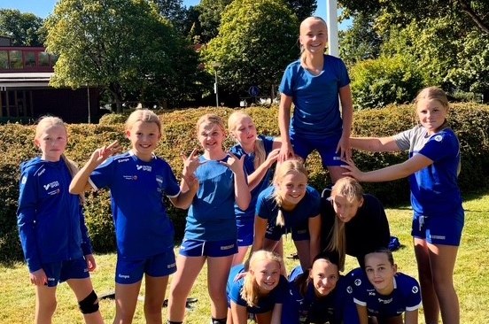 Ett träningspass för 12-åringarna innehåller en blandning av individuell bollkontroll, lagspel och fysträning. – I den här åldern, särskilt för tjejer, är det viktigt att tidigt börja bygga upp styrka, framförallt knä- och bålstyrka, förklarar Elin.