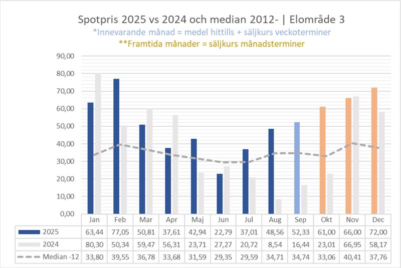Fokus ligger nu framåt på hur hösten utvecklar sig. Hur mycket nederbörd vi får blir avgörande för vattenkraften och därmed för prisnivåerna i vinter. Även tillgängligheten i kärnkraften spelar in, särskilt nu när flera reaktorer är avstängda för planerat underhåll.