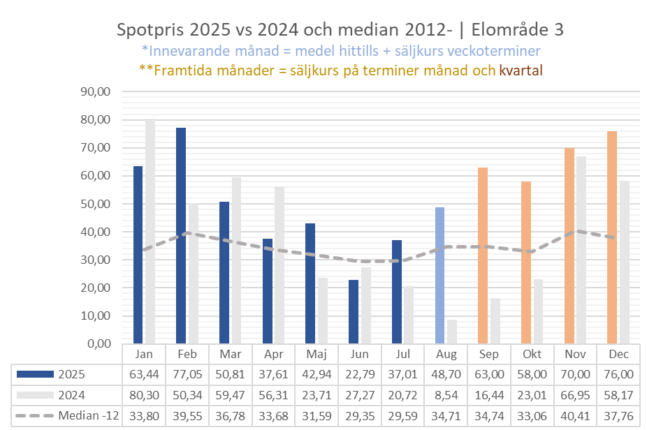 Jämfört med 2024 har priserna varit högre, men fortfarande på en förhållandevis stabil nivå.