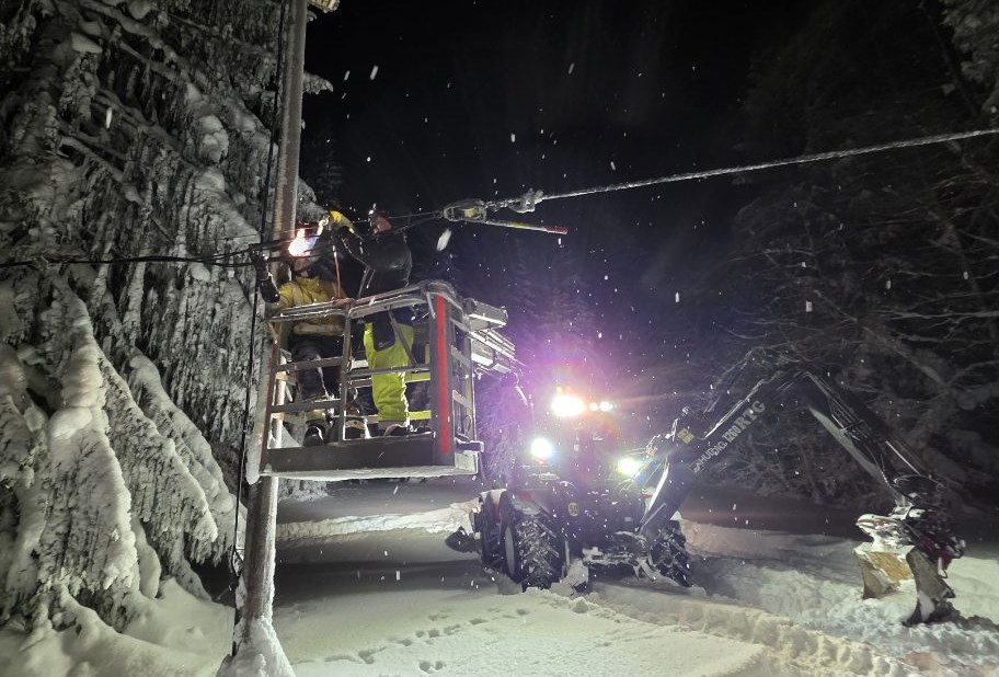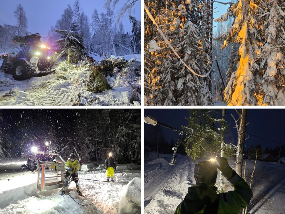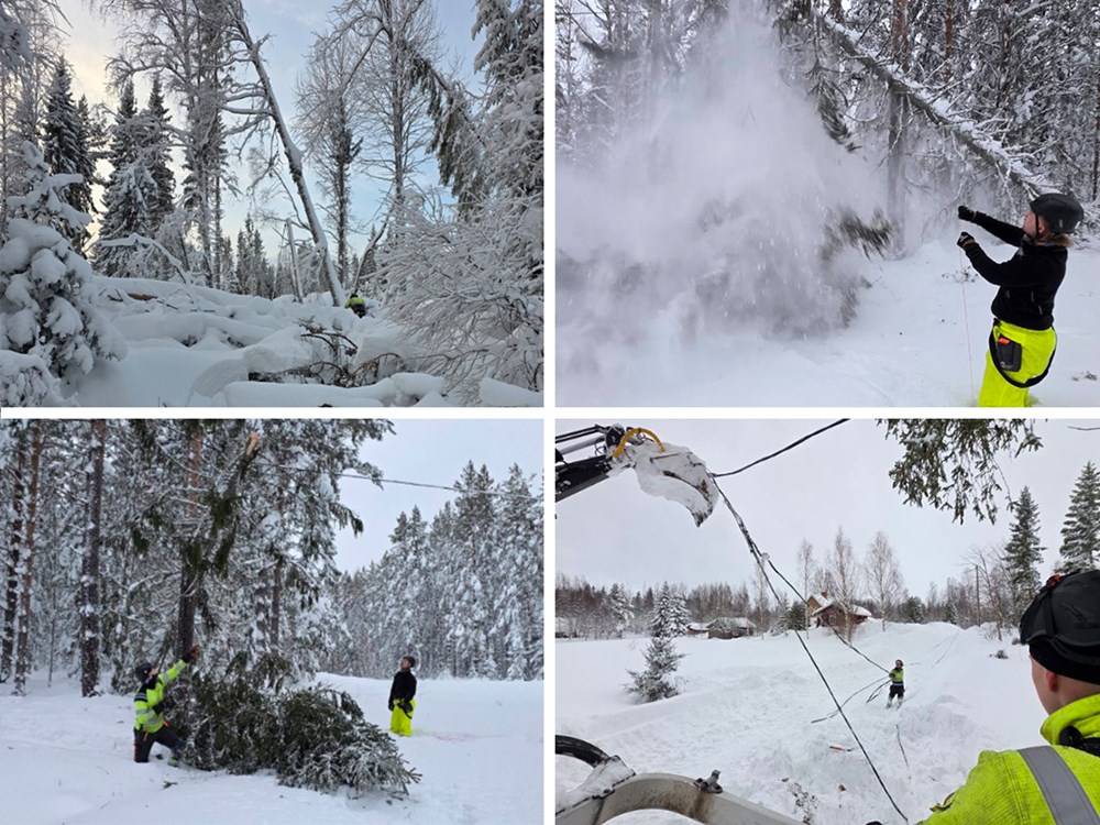 Johan Almgren befann sig samtidigt i trakterna runt Falun och körde en så kallad Huddig – en specialbyggd linjemaskin som kombinerar grävlastare och traktor. Maskinen är utrustad med både korg för arbete på hög höjd och grip för stolphantering och var avgörande för att kunna ta sig fram i den snötäckta terrängen.